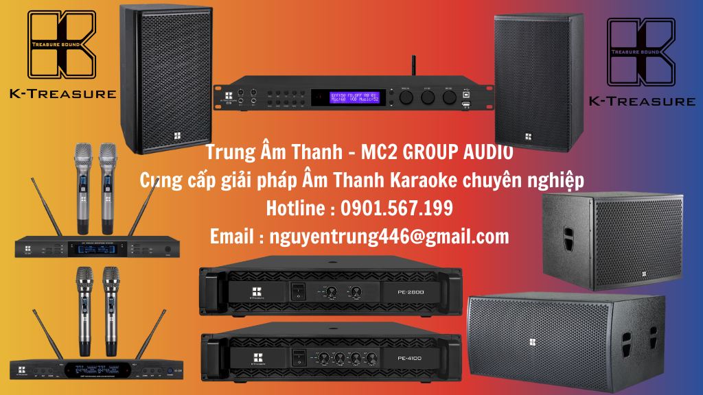 KTreasure Sound cung cấp ra thị trường các thiết bị âm thanh chất lượng cao đặc biệt là loa karaoke, main công suất karaoke.... Các sản phẩm của K-Treasure đều được thiết kế đẹp mắt, áp dụng những công nghệ âm thanh tiên tiến nhất hiện nay, KTreasure luôn đem đến những trải nghiệm âm thanh tốt nhất, chân thật nhất cho quý khách hàng. K-Treasure cũng cung cấp đến quý khách hàng chính sách bảo hành nhanh chóng và hỗ trợ vô cùng tận tâm với đội ngũ kĩ thuật tay nghề cao nhiều năm kinh nghiệm trong lĩnh vực âm thanh