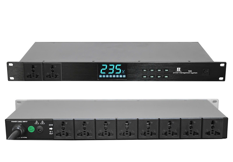 - Khởi động, Tắt tuần tự: Bật, tắt từng cổng từ 1 đến 8 theo trình tự, tránh sụt áp đột ngột khi khởi động đồng loạt các thiết bị công suất lớn (amply, cục đẩy).