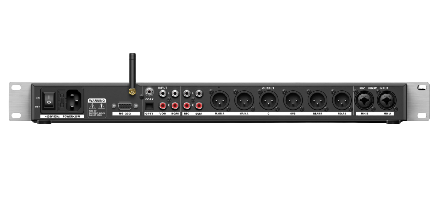 - Vang số karaoke KTreasure D9 được trang bị bộ nguồn autovol chạy điện áp từ 90V - 220V giúp vang hoạt động ổn định ở cả những nơi nguồn điện yếu